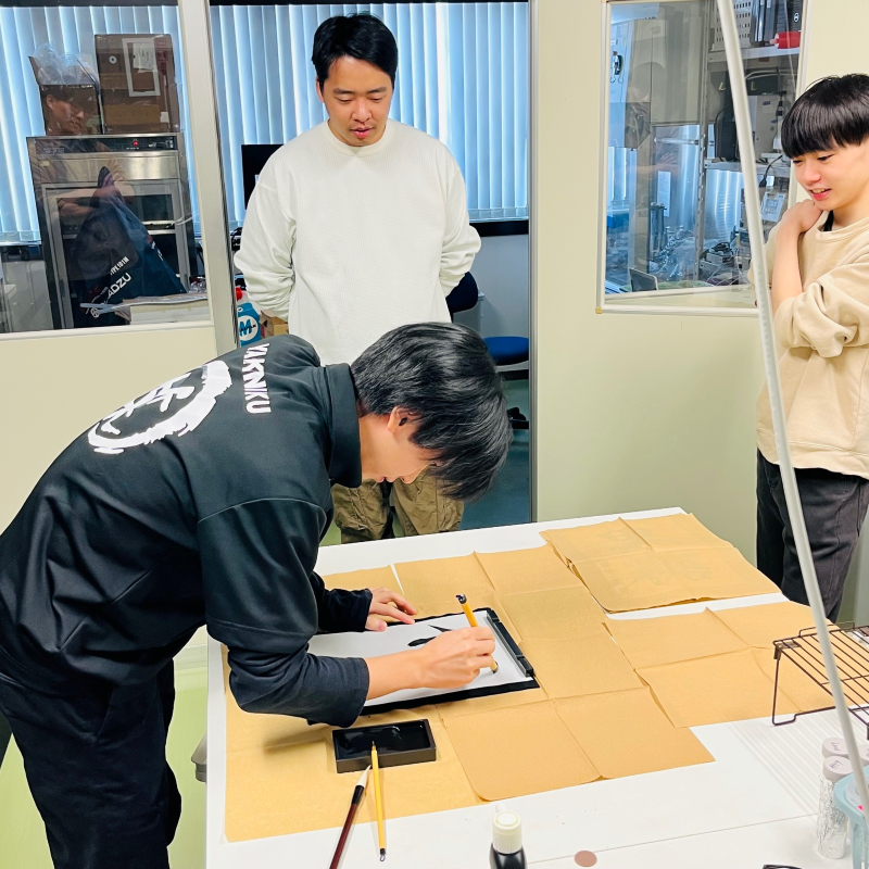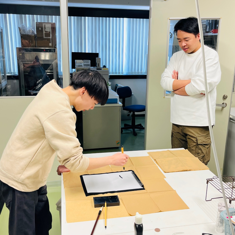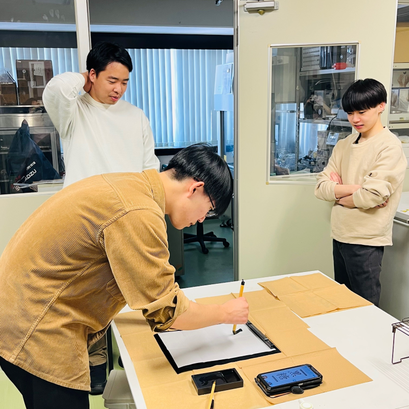 書初め(2026.2) 2026年2月10日 最終更新日時 : 2026年2月10日 kyuu 卒論発表を目前に気合を入れるため、突然、ちょっと遅めの書初めが始まりました。 みんなの書初めをご覧ください。 そして最後にみんなを代表して藤原君がみんなの気持ちをしたためました。 あともう少し!頑張れー!!