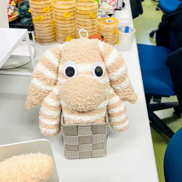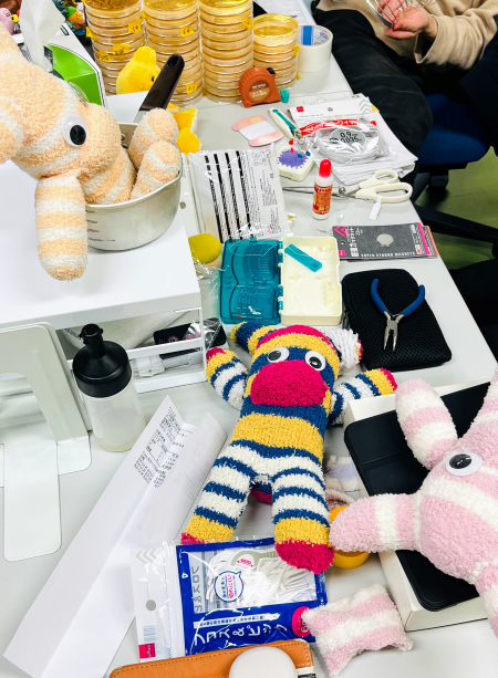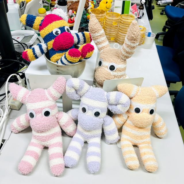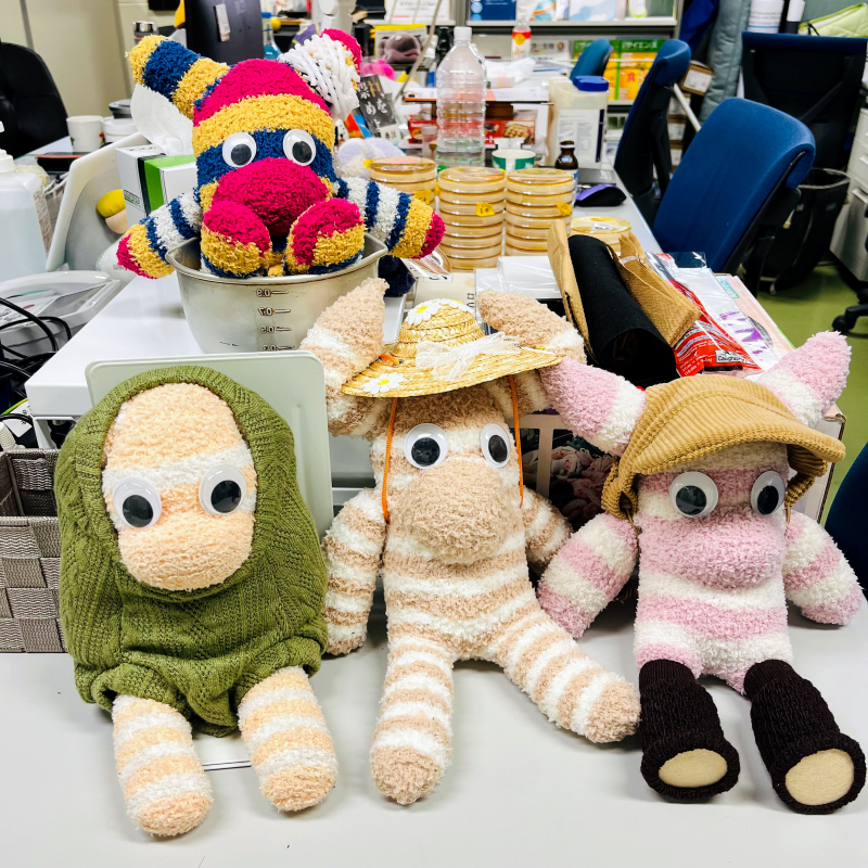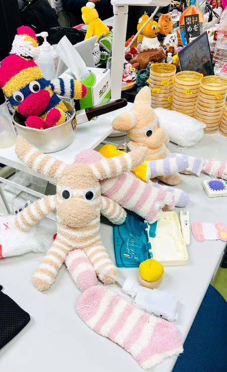 藤原先生はぬいぐるみに針金を入れて、形を変えたり、